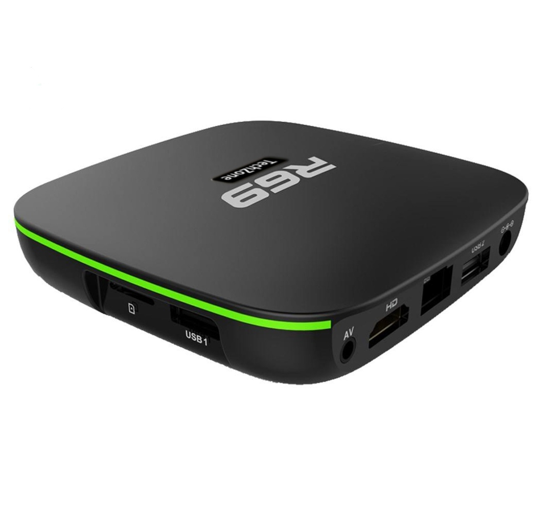 اندروید باکس Android box در واقع یک کامپیوتر کوچک قابل حمل است که روی آن سیستم عامل اندروید نصب شده است.اندروید باکسها به لحاظ امکانات همانند گوشیها یا تبلتهای اندرویدی عمل میکنند . اندروید باکس R69 از پورتهای HDMI ، USB، LAN, AV پشتیبانی میکند و همچنین قابلیت نصب کارت حافظه تا حجم 32 گیگا بایت را دارد. با این دستگاه تمام قابلیتهای یک کامپیوتر کوچک از قبیل انجام بازی ، وبگردی ، نمایش فیلم و عکس ، استفاده از همه نرم افزارهای شبکههای اجتماعی ، اتصال تلفنی از طریق Skype و … را خواهید داشت. این دستگاه دارای یک ریموت کنترل از راه دور است و اتصال آن به شبکه اینترنت هم از طریق پورت LAN و هم شبکه بی سیم انجام میشود. این محصول دارای پردازشگر چهار استه ای است و از سیستم عامل اندروید 7 پشتیبانی میکند. شما میتوانید با استفاده از این محصول از تماشای تصویری با کیفیت 1080و Full HD و 4K لذت ببرید. دستگاه R69 از 24 زبان زنده دنیا از جمله انگلیسی، فارسی، آلمانی، ژاپنی و ... پشتیبانی میکند. نرم افزار این دستگاه از فیلمهای3D نیز پشتیبانی میکند